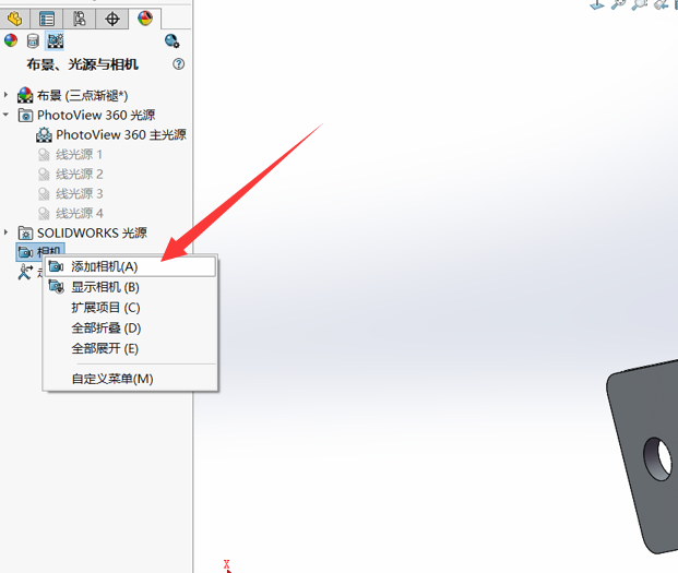 Solidworks进行渲染的时候需要添加相机才能操作,该怎么添加相机呢?下面我们就来看看详细的教程。