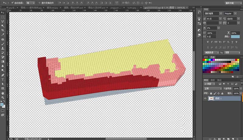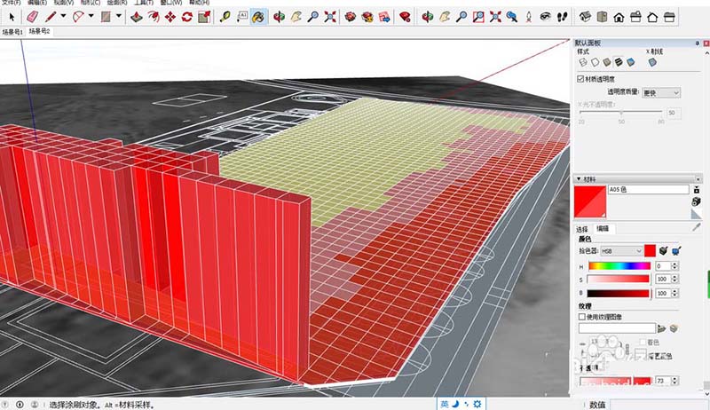 6、不同的颜色推拉到不同的高度,可以帮助我们十分直观的看到图块的整体信息,并且可以很直观的体现,导出到PS可以进行排版。