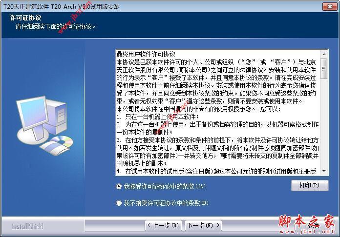 1、首先确保已经安装AutoCAD,点击运行T20天正建筑软件 V5.0,接受许可协议,点击下一步