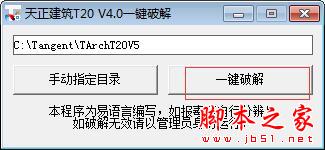 6、安装后不要运行,点击运行天正建筑T20 一键破解.exe(虽为4.0版,目前仍可用),选择指定软件安装目录,如图