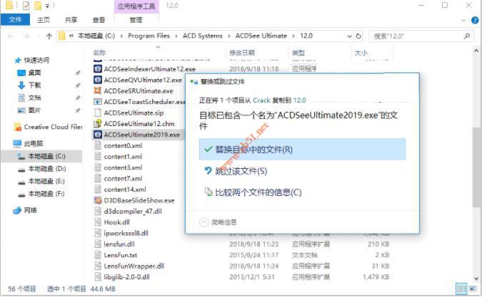 1.将补丁ACDSeeUltimate2019.exe复制到安装目录并替换