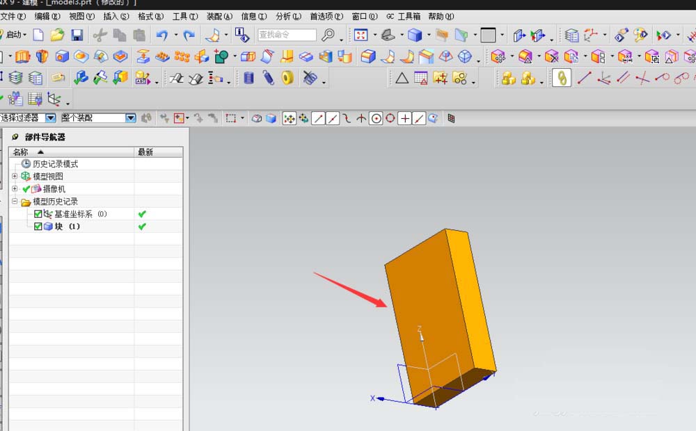 1、用UG新建一个零件,拉伸一个长方体。