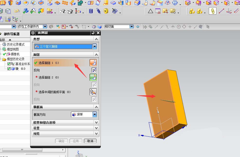 2、点击面倒圆命令