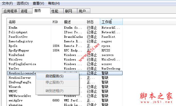 10、继续在任务管理器界面打开HoudiniLicenseServer服务,点开始