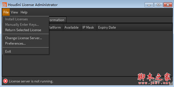 15、在Houdini License Administrator界面的菜单栏的File菜单下选Manual Enter Keys