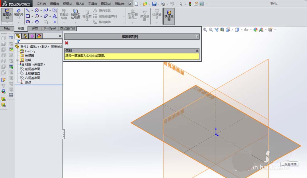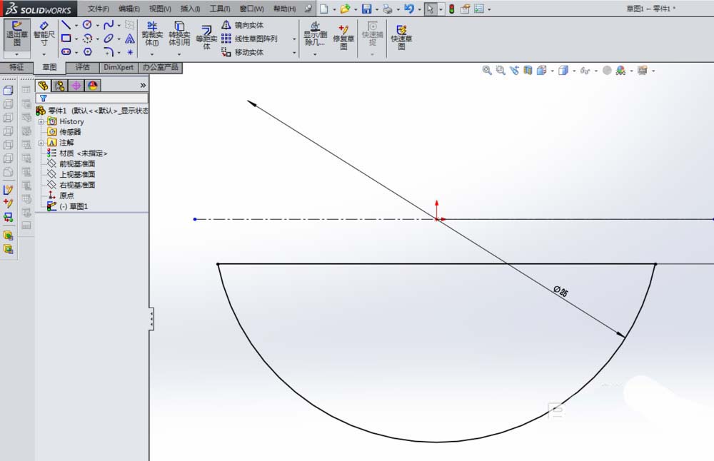 2、如下图所示,以上视基准面为草图平面创建一个草图。