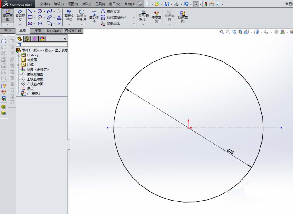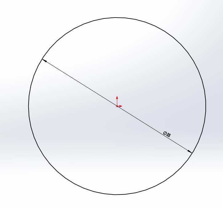 3、在草图工具栏中找到圆命令并激活,画一个直径25mm的圆。