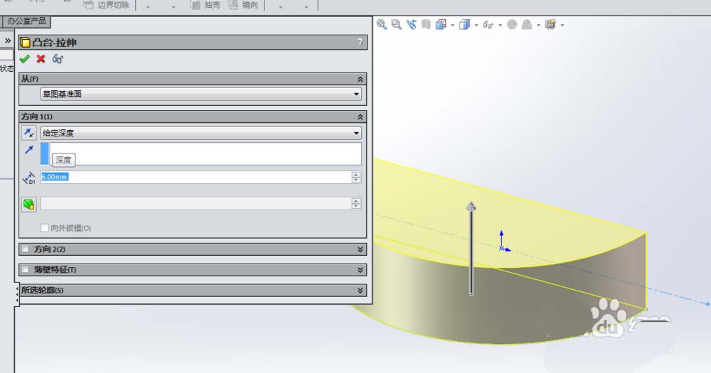 7、如下图所示,用“拉伸凸台/基体”命令,拉伸6mm高。
