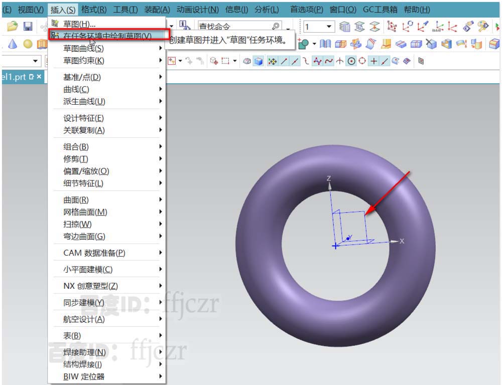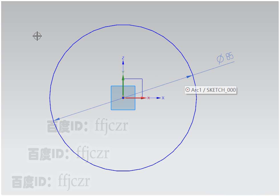 1、吊环有很多种规格,这里创建一个螺纹为M30的吊环。首先选用在任务环境绘草图,以XZ面为草绘平面。在草图中,以坐标原点为圆心,绘出直径为85的圆。