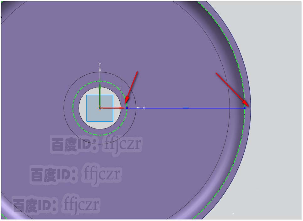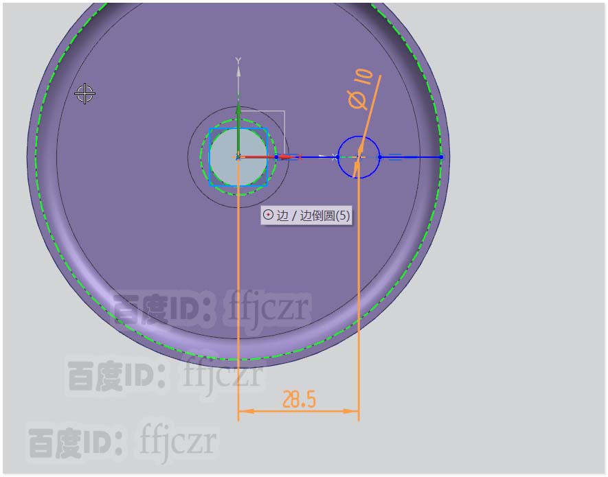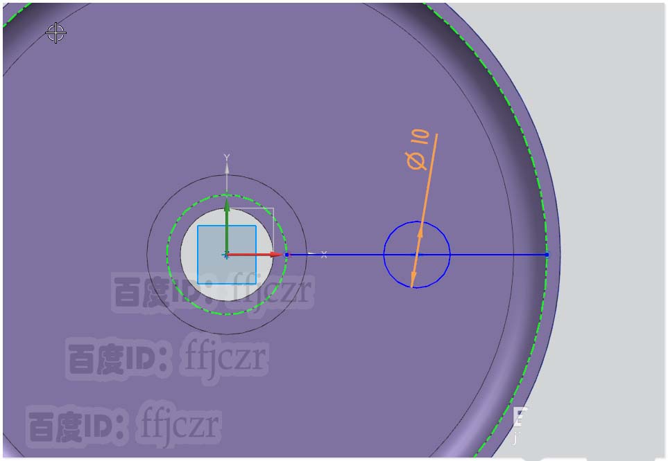 1、模型的中间为沉头抽壳后形成的结构,作为塑胶件,中间这样一个凸出结构是很难保持稳定的。本次要在其周围添加四条加强筋。