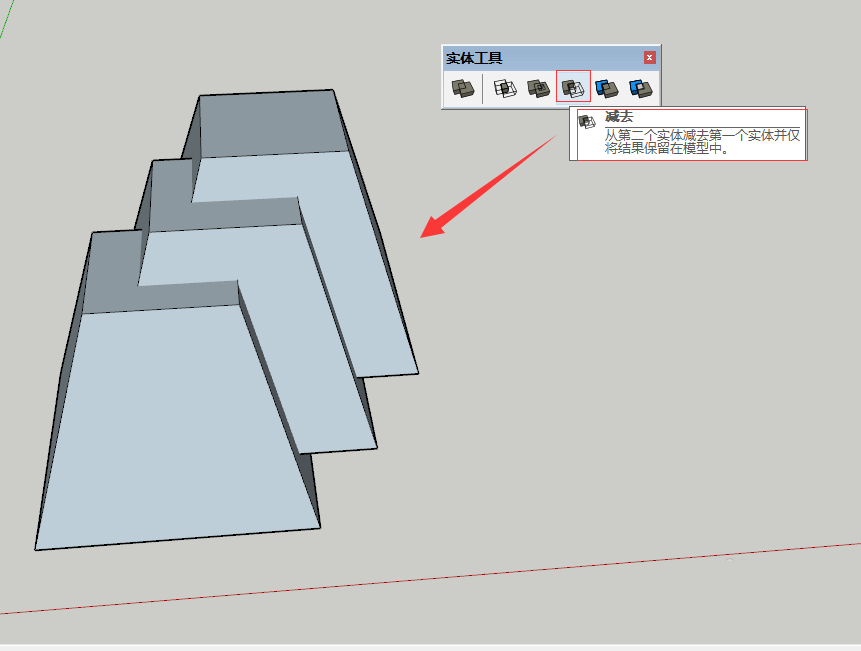 4、用实体工具的减去工具编辑模型。先后顺序一定要对。
