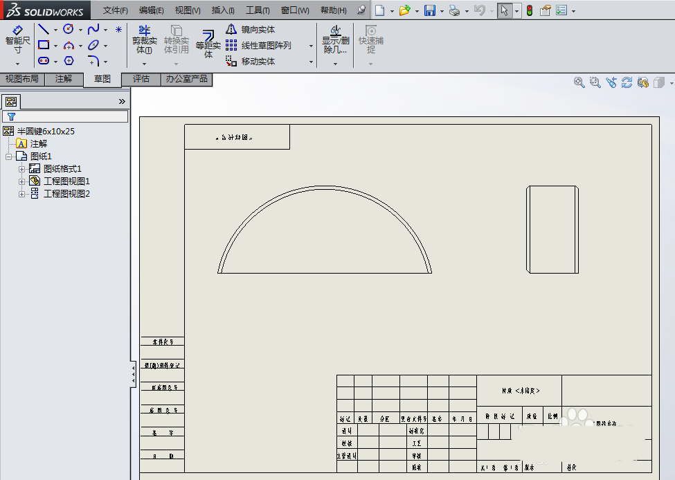 1、如下图所示,打开事先保存好的SolidWorks工程图,可以看到之后两个视图。