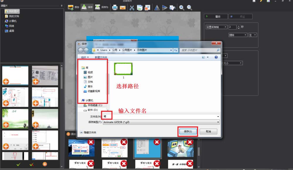 6、最后,点击保存——选择好保存的路径——输入保存的文件名——然后点击保存,就可以保存好GIF动画了。