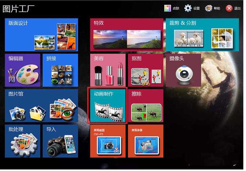 1、首先下载安装图片工厂后,双击打开它——在功能界面那里找到:动画制作,点击打开动画制作界面。
