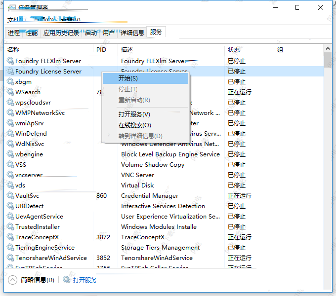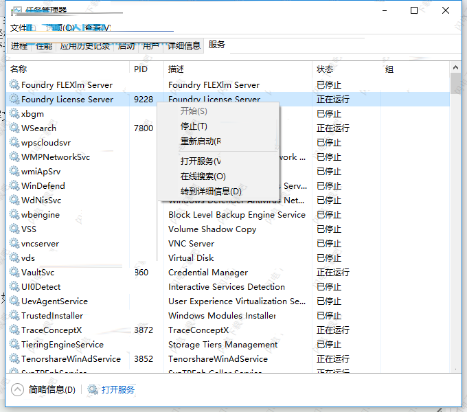 10、停止 Foundry许可证服务器,找到Foundry License Server右键停止