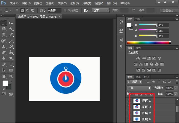 打开图片,我们可以看到图层列表里有20多个图层,可以对每一层分别进行修改。