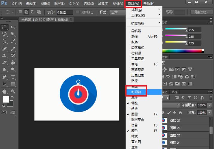 想要看到动图效果,可以打开时间轴,点击窗口——时间轴,进行勾选。