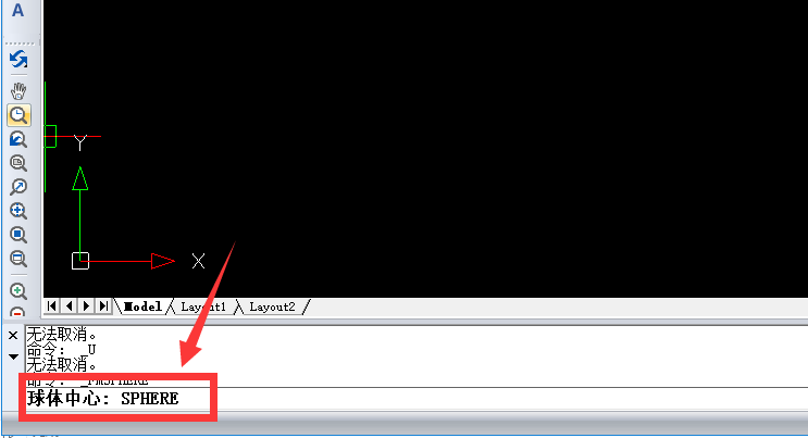 2、选择完成之后在下方出现的命令中:球体中心输入“SPHERE”即可!