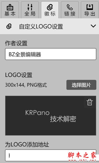 在徽标设置页,可以设置作者信息,LOGO信息,以及跳转网址信息