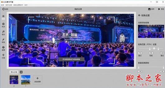在全景编辑页,你可以编辑初始视角,添加热点,添加音乐,特效,遮罩,沙盘等
