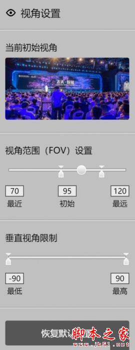 在初始视角编辑页,可以设置场景的初始视角,视角范围,垂直视角限制
