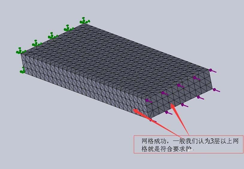 5、选择生成网格,一般如果建模准确,前面步骤没有遗漏,都会顺利完成网格划分,划分的结果我们要根据经验判断是否合理,一般三层以上我们就认为符合要求。