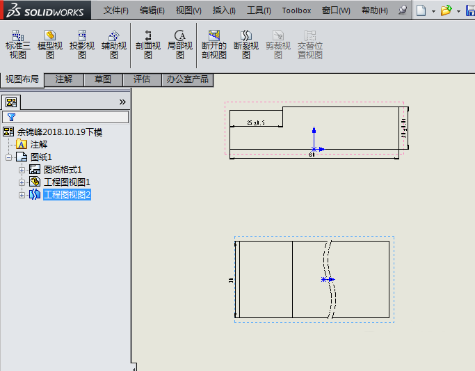 8、如下图所示,一个断裂视图创建成功了。