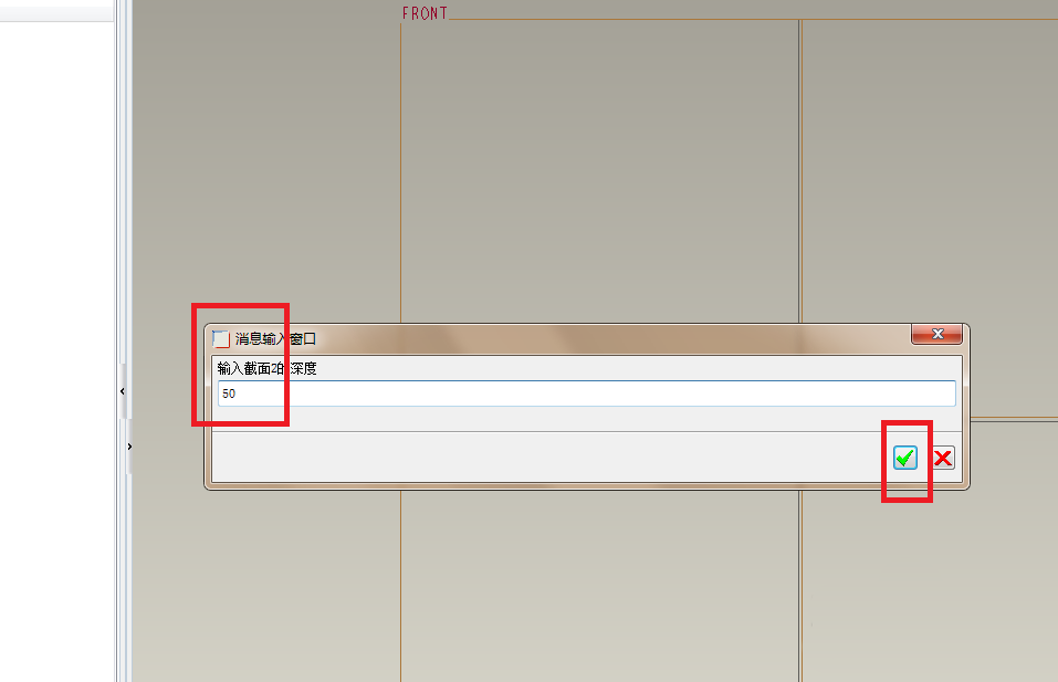 10、如下图所示,截面2的深度设置为50,然后点√。