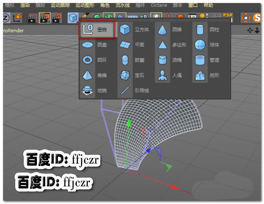 5、添加一个空白对象,将立方体置于空白对象的子级。