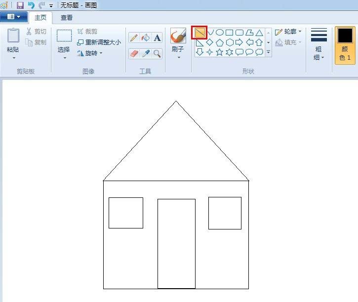 6、在形状选择框中选择直线,画出窗户和门上的形状。