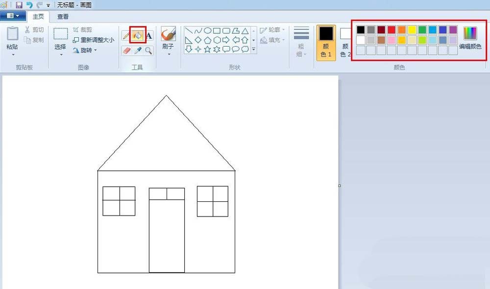 7、选择油漆桶工具,给房子填充上喜欢的颜色。