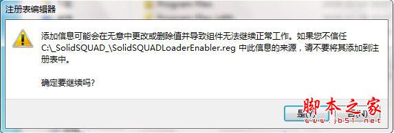 9、最后运行“SolidSQUADLoaderEnabler.reg”并确认添加信息