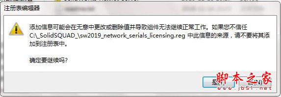 1、下载软件压缩包文件,用户现将补丁文件夹_SolidSQUAD_复制到C盘目录下,双击sw2019_network_serials_licensing.reg导入注册表信息