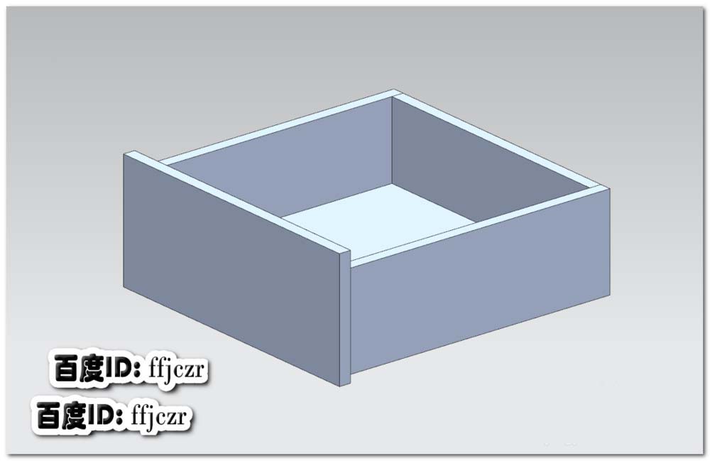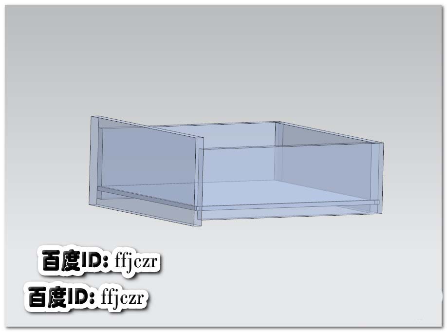 9、将抽屉底板的两端偏置出5CM。选用布尔求差命令,以抽屉底板为工具,勾选保留工具体。对抽屉的三块围板及面板进行布尔求差,得到底板的固定槽。抽屉模型创建完成。