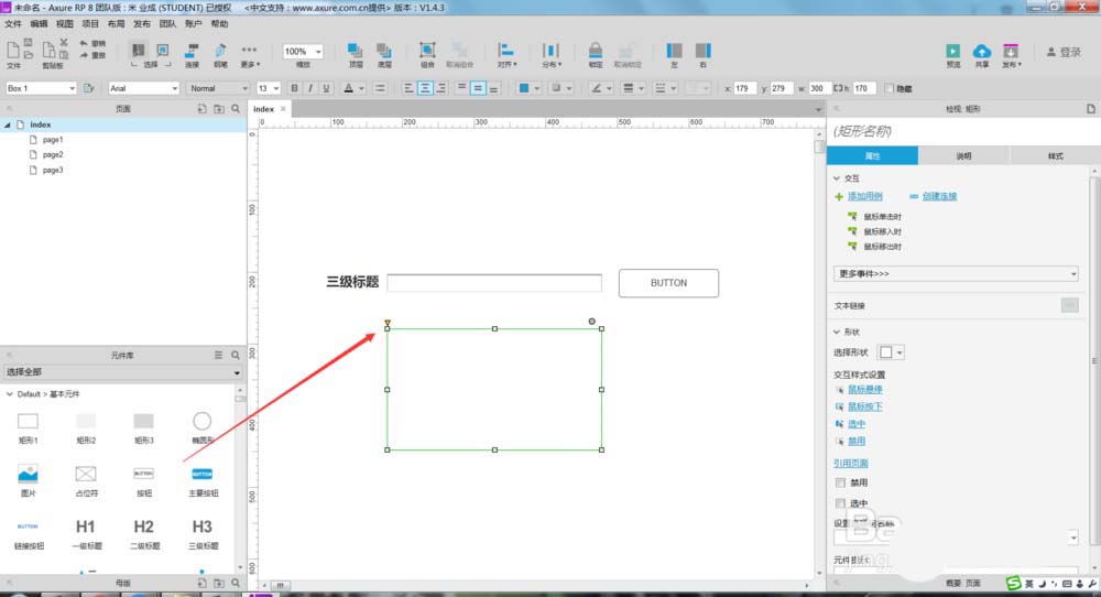 1、首先创建一个空白页面,在工作区域内拖入准备使用的元件元素,包括矩形、输入框、按钮等,如下图所示。