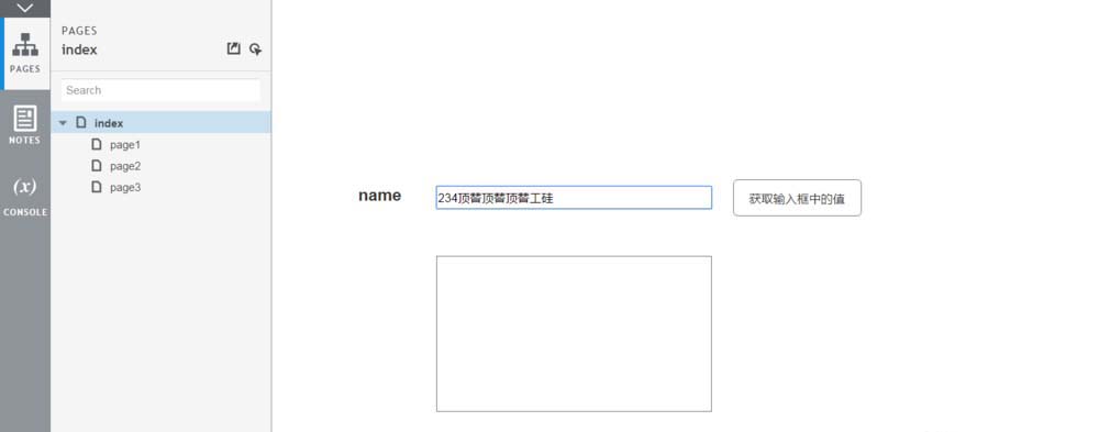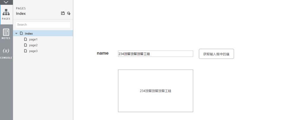 6、点击获取输入框中的值这个按钮后,下面的矩形中就会出现对应的字符,并中输入框中的相同,这就是变量的使用方法,当然还有更多的方法也解决这个问题,大家可以自己学习一下。