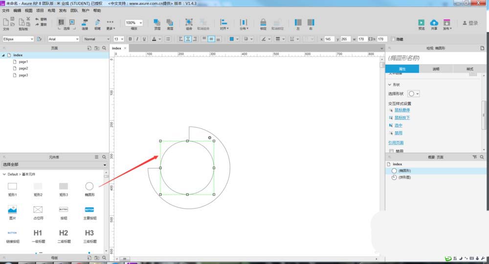 4、下面我们在拖入一个椭圆形到工作区域中,如下图所示。