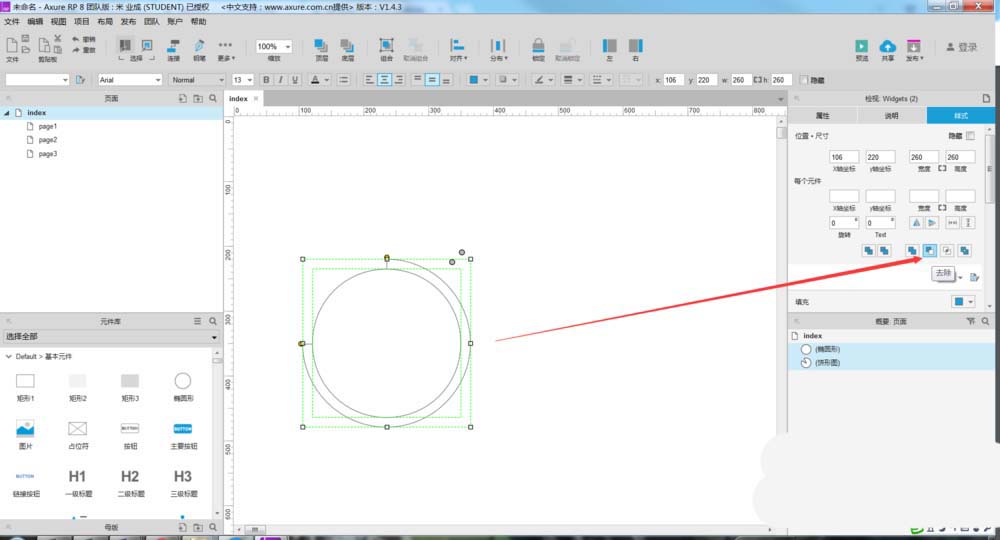 6、位置和大小设置好后,将两个原件同时选择,点击样式下面的去除按钮,如下图所示。