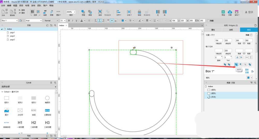 11、同样,选择其他一个小圆角及刚刚制作的仪盘,点击样式选择合并按钮,如下图所示。