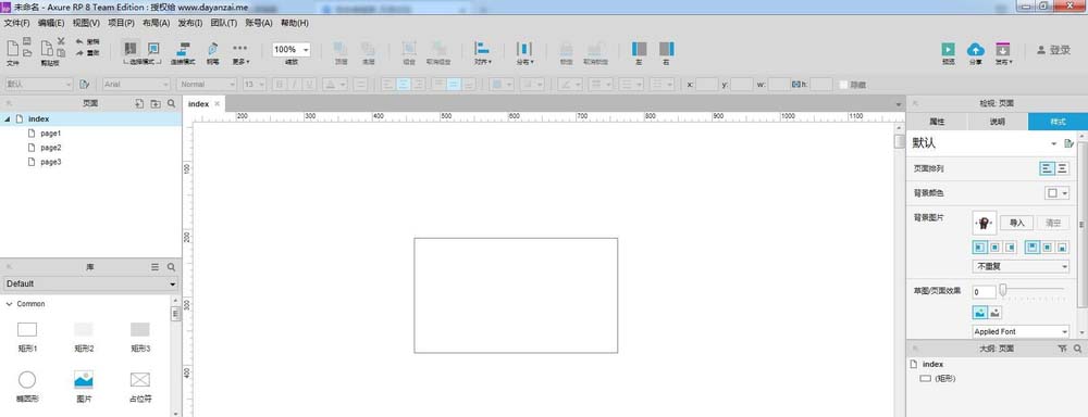 打开RP8软件,新建一个空白的画布,拖动一个矩形到画布上