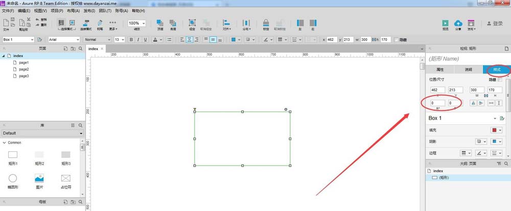 直接设置,选中矩形元件,在样式中找到R设置,如图所示;