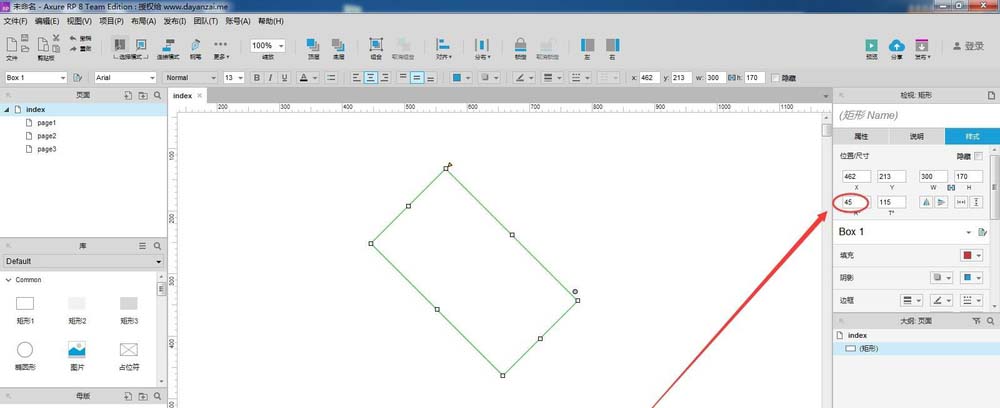 Axure RP8元件默认角度是水平的,想要设置倾斜的角度,该怎么设置呢?下面我们就来看看详细的教程。