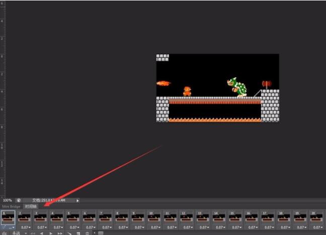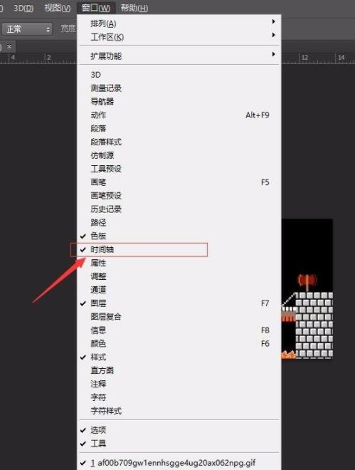 打开Photoshop软件,导入GIF动图,点击菜单栏中的窗口——时间轴,面板下方就会显示有关此图的信息,