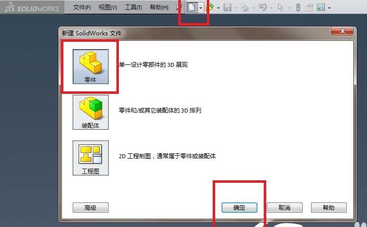 1、如下图所示,打开SolidWorks软件,新建一个空白的零件文件。