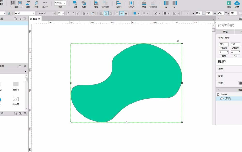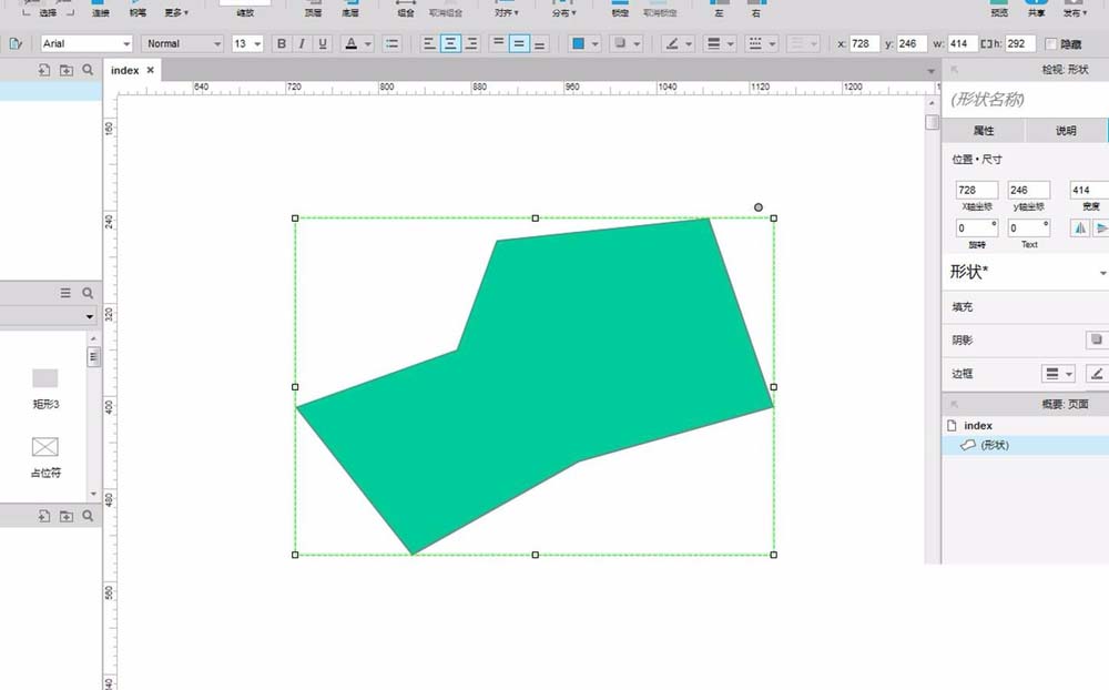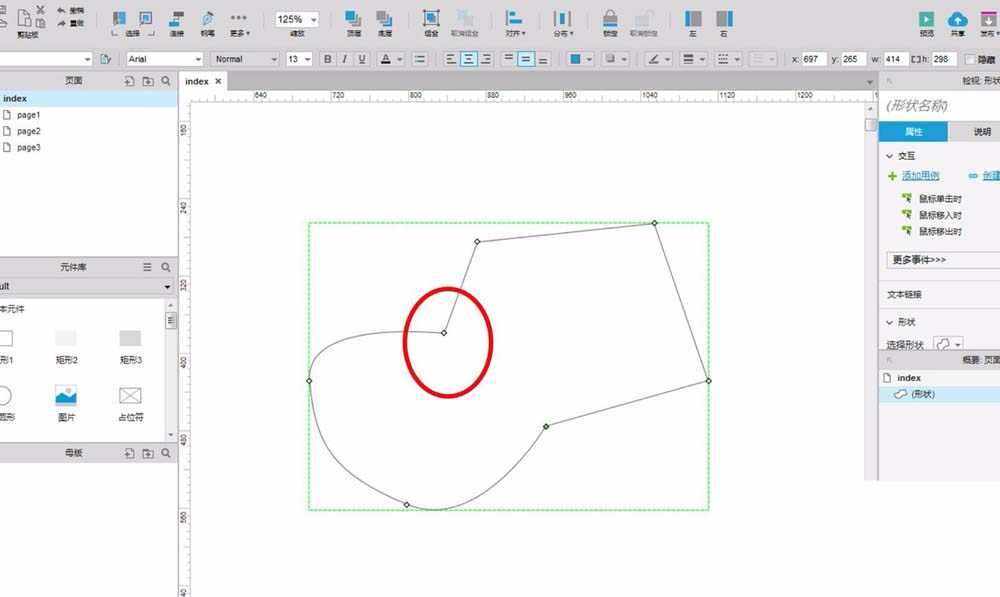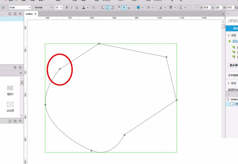 4、把鼠标移动到起点位置,Axure软件会自动捕捉起点,只要点击一下左键,即可得到一个封闭的图形。