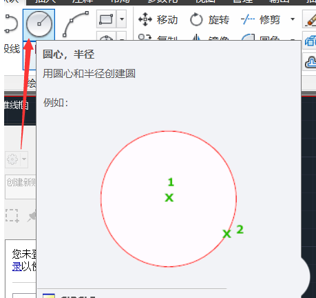 点击命令之后这里注意下的命令中提只要按照行操即可。首先选择个圆心位置选择好之后鼠标左键击一次然后输圆半径然后再点击标左键或者点击键空都可以。
