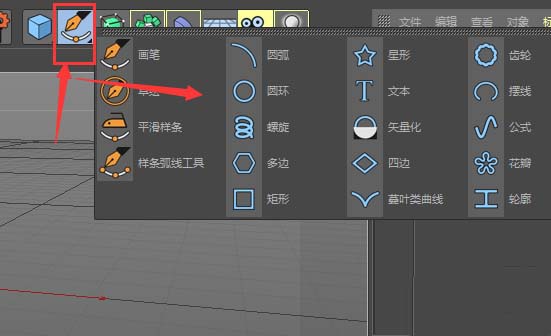5、另一种构图就是线性图了,立方体右侧就是这个选项,也是长按鼠标左键打开属性框,然后可以找到很多的图形,不过这些都是线性的