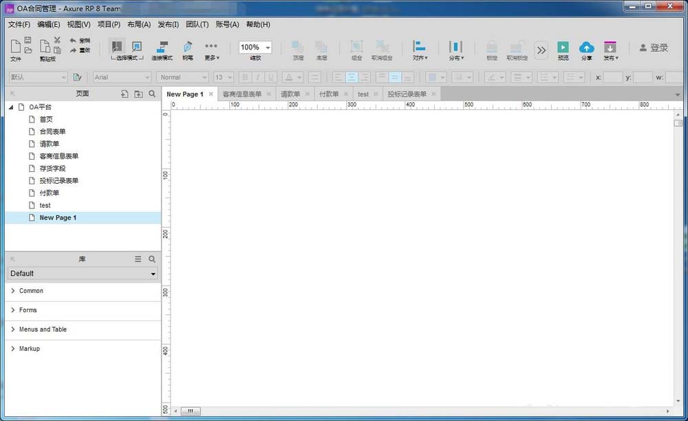 1、在AxureRP8中如何插入图片,打开一个空白的画布;