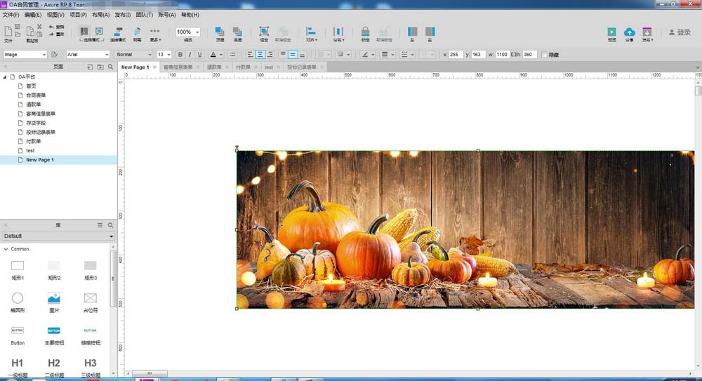 5、选中图片后就会将图片插入到axure画布中了;