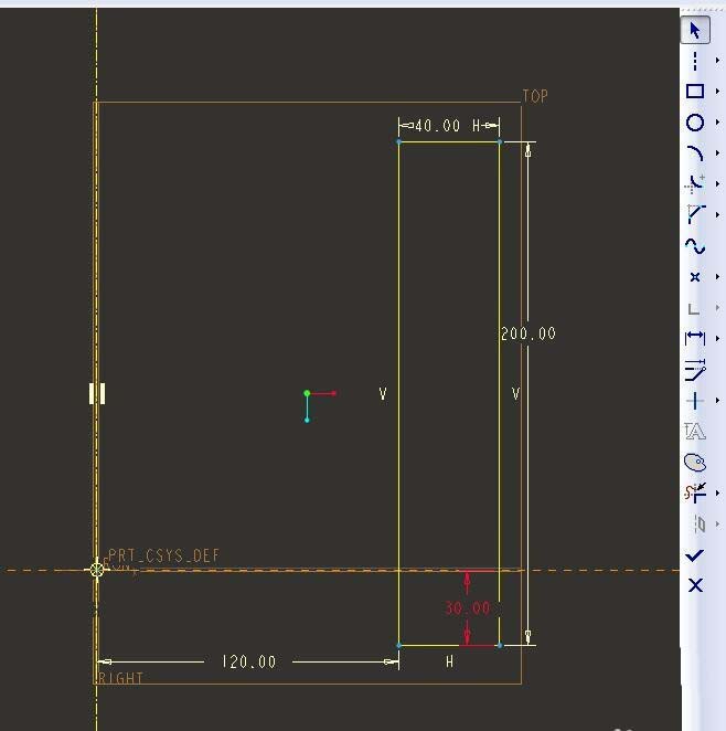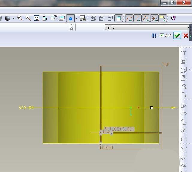 具体:如下第一幅图所示,执行【选择——位置——定义——TOP面——草绘】,如下第二幅图所示,进入到草绘环境,首先画一条竖直的中心线,然后画旋转截面(矩形),尺寸最好保持一致,最好√(完成并退出草绘),如下第三幅图所示,退出草绘之后,在软件右上角点击√,完成旋转操作。